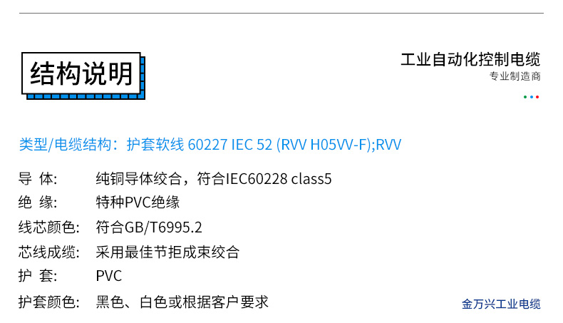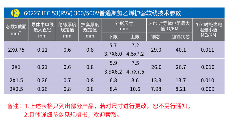 类型/电缆结构护套软线 60227 IEC52 (RVV H05VV-F);RVV