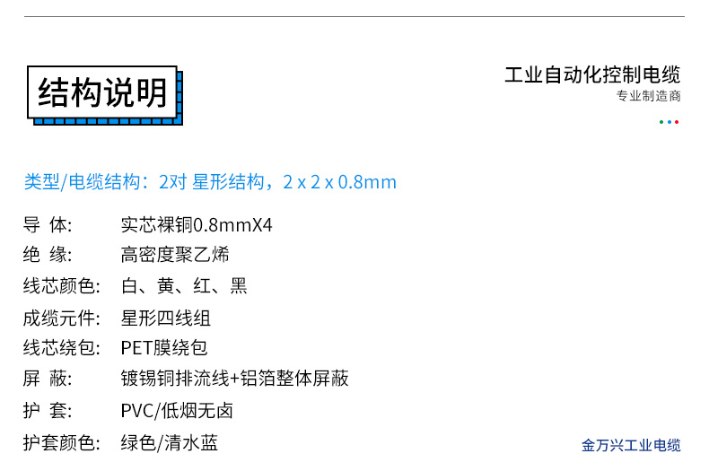 类型/电缆结构2对星形结构,2x2x0.8mm