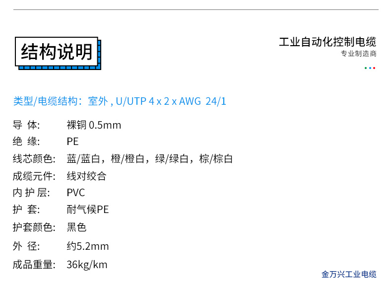 线芯颜色蓝/蓝白,橙/橙白,绿/绿白,棕/棕白
