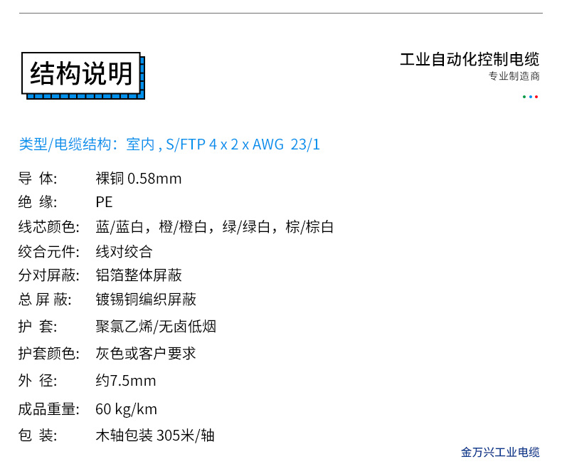 线芯颜色蓝/蓝白,橙/橙白,绿/绿白,棕/棕白