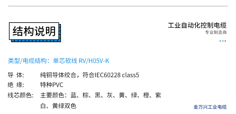 线芯颜色主要颜色:蓝、棕、黑、灰、黄、绿、橙、紫 白、黄绿双色